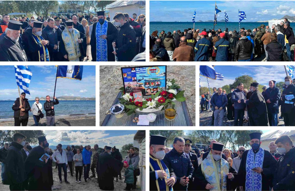 Μετά την επιμνημόσυνη δέηση ακολούθησε ενός λεπτού σιγή, εκφώνηση του εθνικού μας ύμνου και ρίψη λουλουδιών στη θάλασσα.
