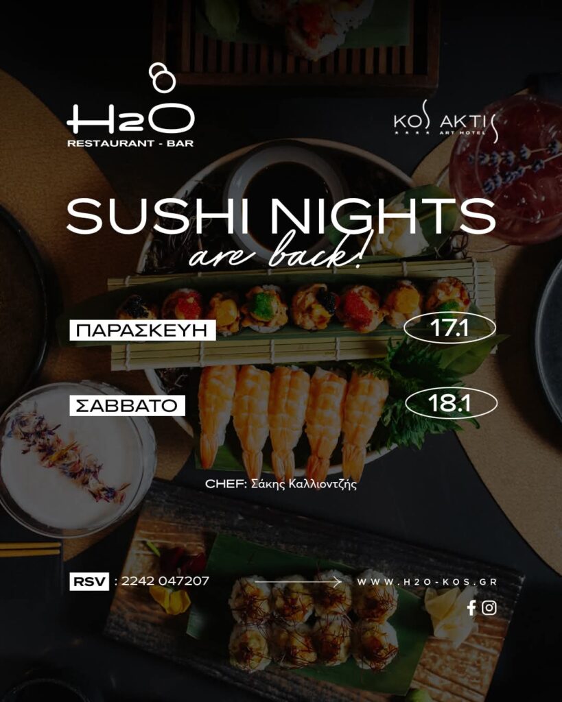 H20 all day restaurant Sushi nights: 18 – 19 Ιανουαρίου