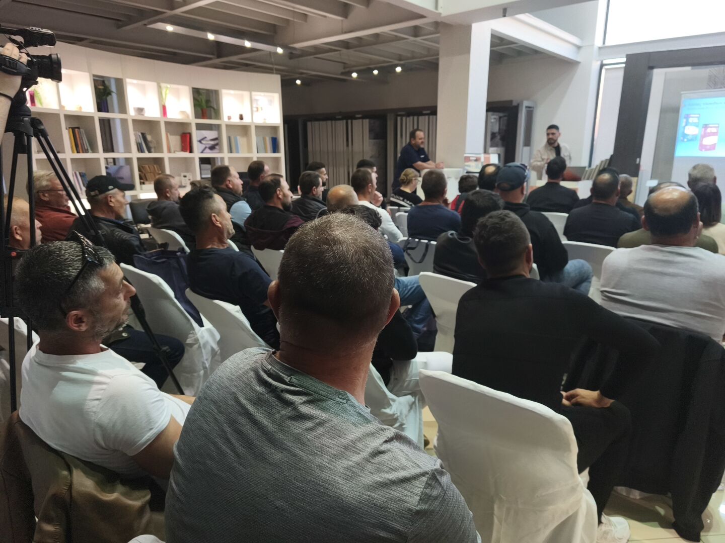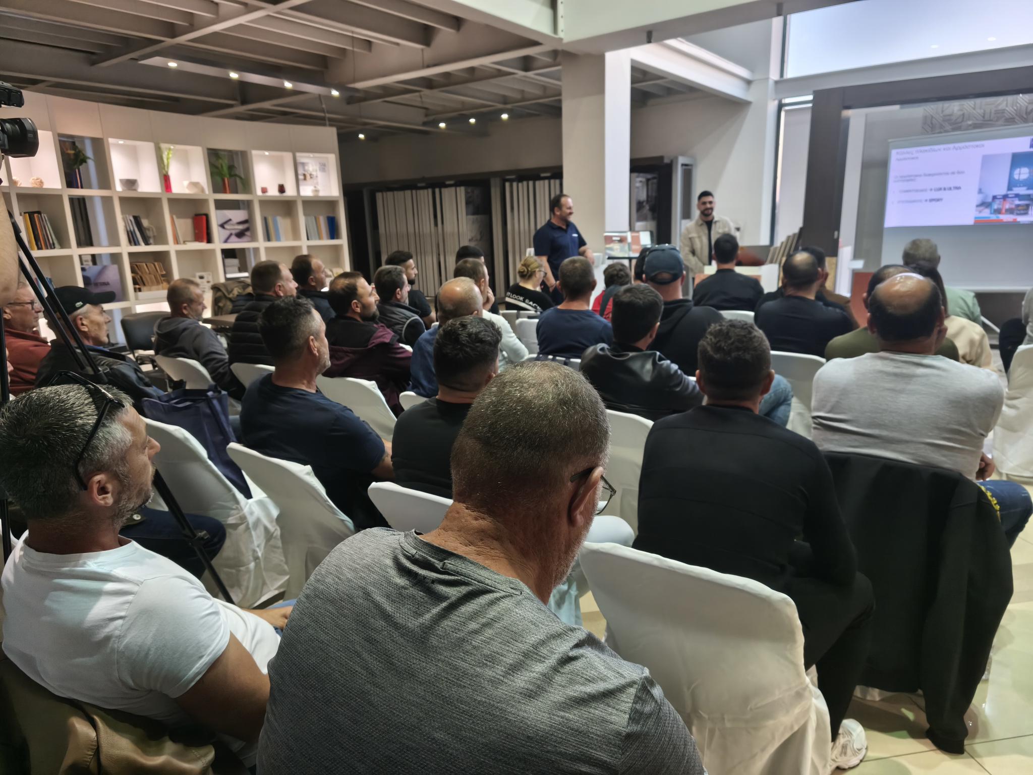 Η Porcelana Σπύρου Λευτέρης στις ιδιόκτητες εγκαταστάσεις στο Λινοπότι συνεχίζει να επενδύει στην ενημέρωση και την τεχνική υποστήριξη των συνεργατών της, προσφέροντας λύσεις που συνδυάζουν την ποιότητα με την καινοτομία όπως ανέφερε κατά τη διάρκεια του χαιρετισμού του ο ιδιοκτήτης κ. Σπύρου.
