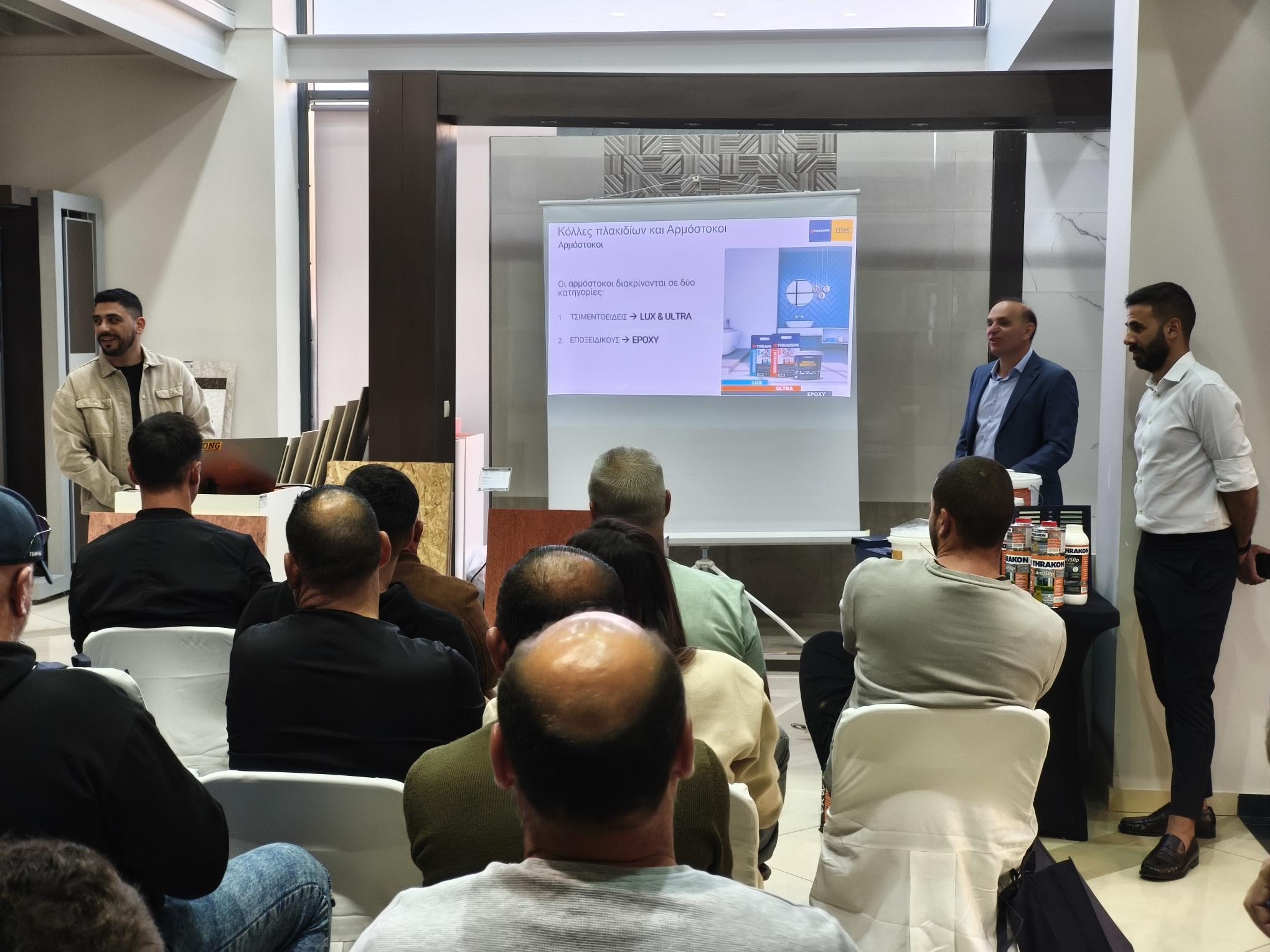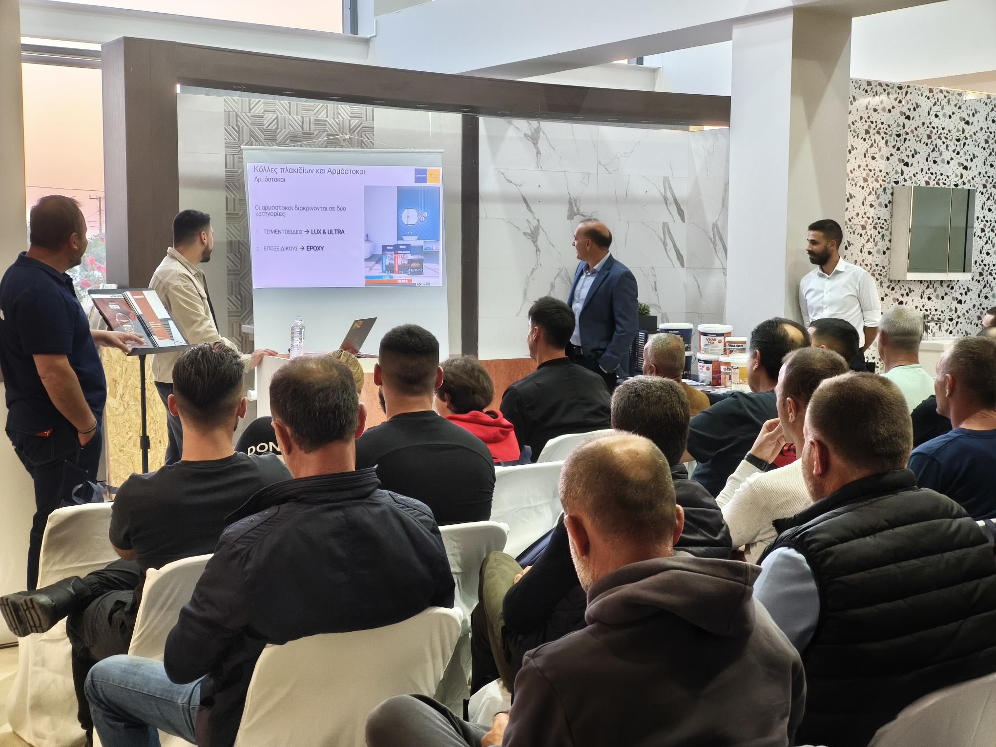 Κατά τη διάρκεια της εκδήλωσης οι παρευρισκόμενοι ενημερώθηκαν για τα νέα προϊόντα και το πως μπορούν να τα χρησιμοποιήσουν. Έγινε μία αναλυτική παρουσίαση και δειγματισμός σε εξελιγμένες κόλλες πλακιδίων και αρμόστοκους υψηλής αντοχής.